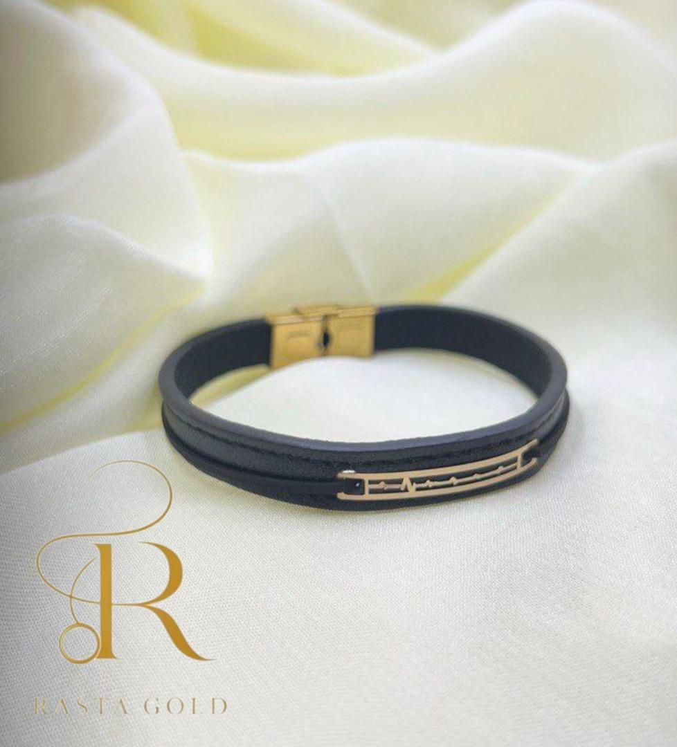 دستبند بند چرمی طرح ضربان قلب با طلای 18 عیار و وزن ۰.۱۲۰ گرم، ترکیبی از طراحی مدرن، مفهوم عاشقانه و استایل مردانه است. یک اکسسوری شیک برای استفاده روزمره و هدیهای ماندگار برای کسی که دوستش دارید.